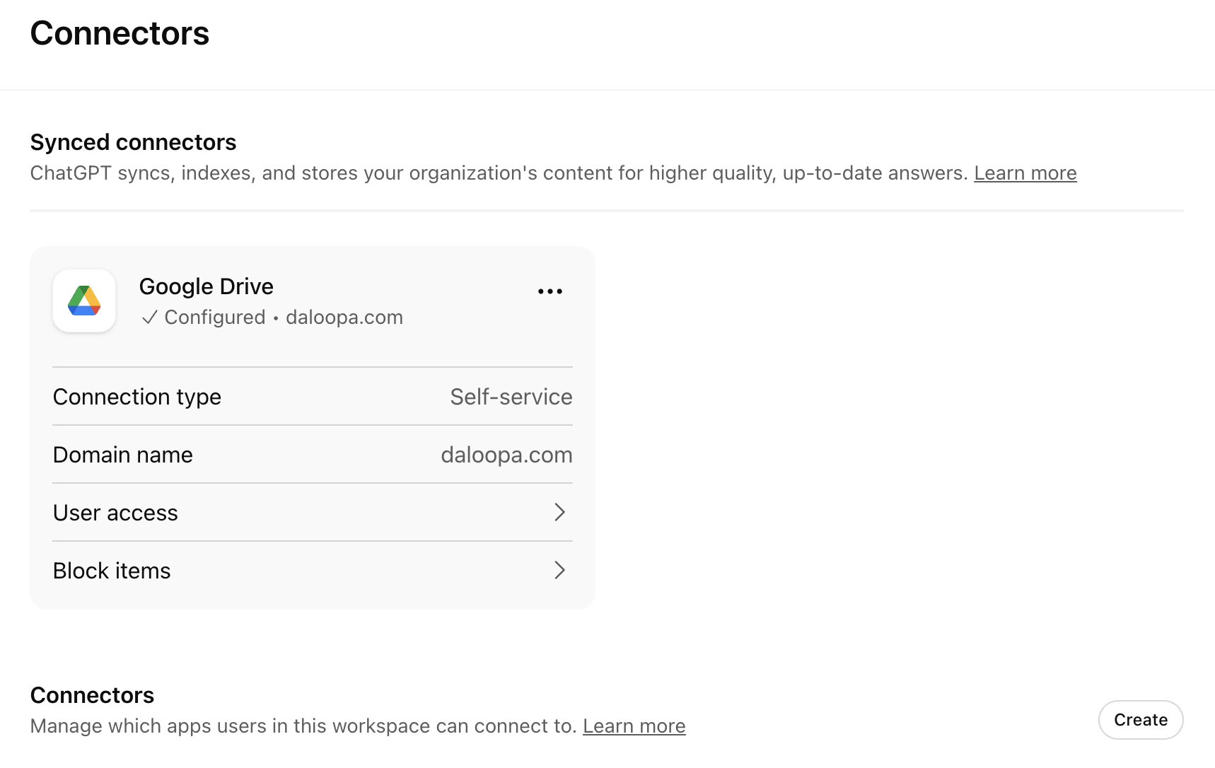 Click Back, scroll to the top of the Connectors view and click on Create in the top right corner