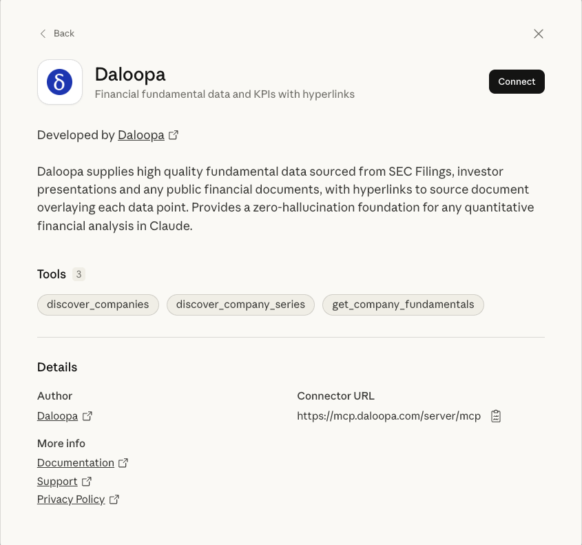 - MCP Server URL: https://mcp.daloopa.com/server/mcp