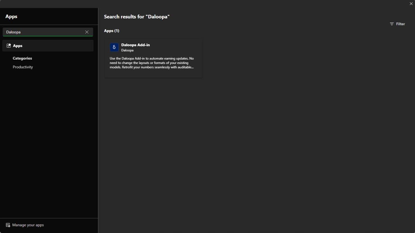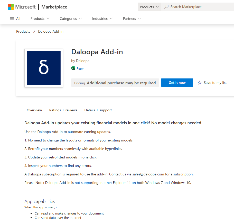 - Open the Daloopa Add-in page on Microsoft AppSource: Daloopa Add-in