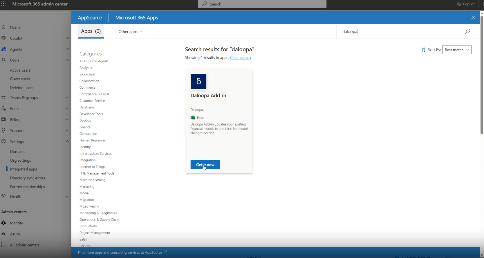 - Search for “Daloopa Add-in” in Microsoft AppSource and select it.