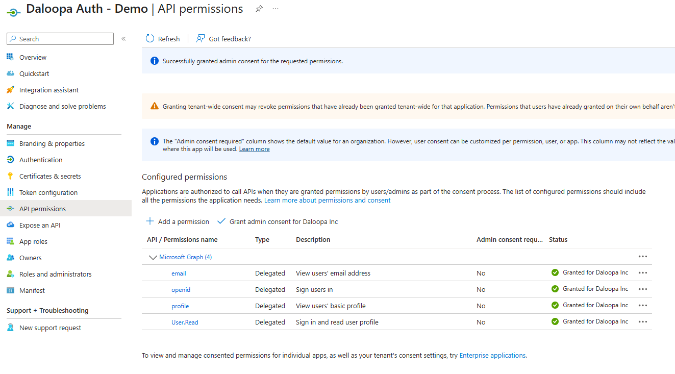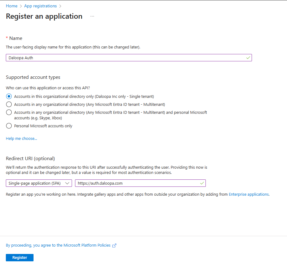 - Ensure Redirect URI in Entra matches exactly with Daloopa's Auth page.